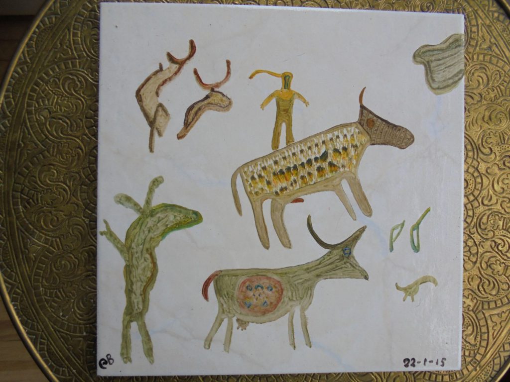 Expositie van rotstekeningen in de bibliotheek Muiden.